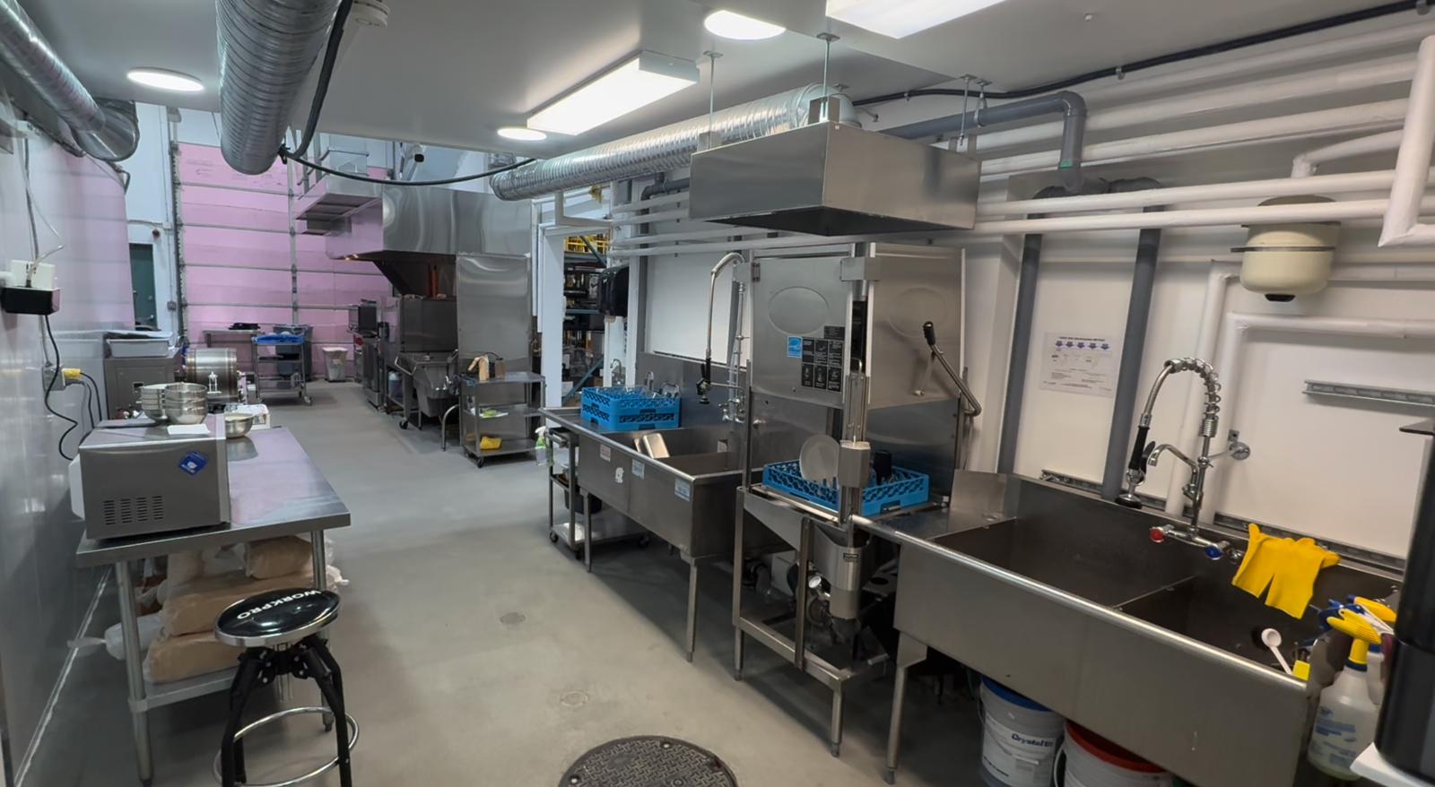 Access to commercial-grade equipment, prep areas, refrigeration, and dry storage to support efficient food production and safe handling.